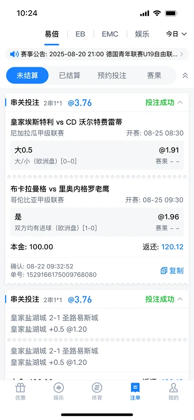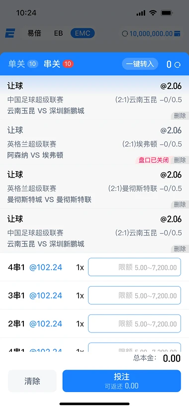 每周于【易倍体育】【EMC体育】【EB体育】场馆投注指定赛事,享指定场馆总负盈利包赔!本活动无需申请,赛事结束12小时后自动结算包赔彩金。详情请查看官网活动页面。